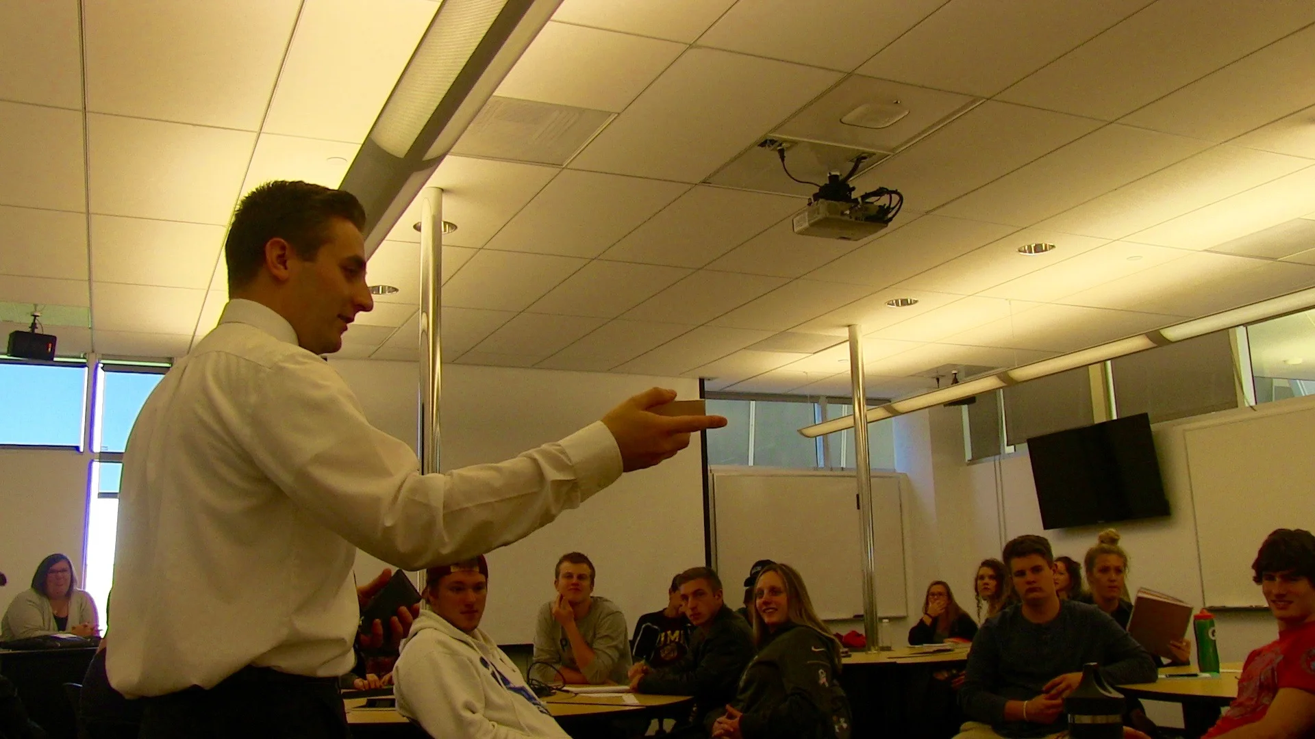 Filipovich returned to his alma mater to speak at a seminar class taught by Kirby Student Center Director Jeni Eltink.